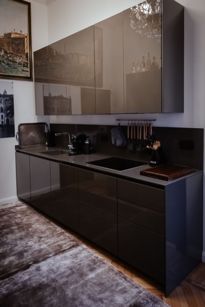 Nevertheless, the weight of the buildings sinking to the bottom of the lagoon has resulted in the structures sagging over the centuries, as is evident from the ceiling height of the first floor of Palazzo Tron a San Beneto. The height of the ceilings on the upper floors is more than three meters, whereas it has dropped to 2.10m on the ground floor. Used mainly as a boathouse today, the ground floor was originally used for business and storage purposes. These areas were originally called androne. Private life, on the other hand, took place on the upper floors. In addition, the ground floor is only partially subdivided into rooms. This was already so at the time of the original construction of the building, as regular flooding, or aqua alta, meant restrictions in terms of possible uses, and more walls meant the risk of promoting long-term water damage.